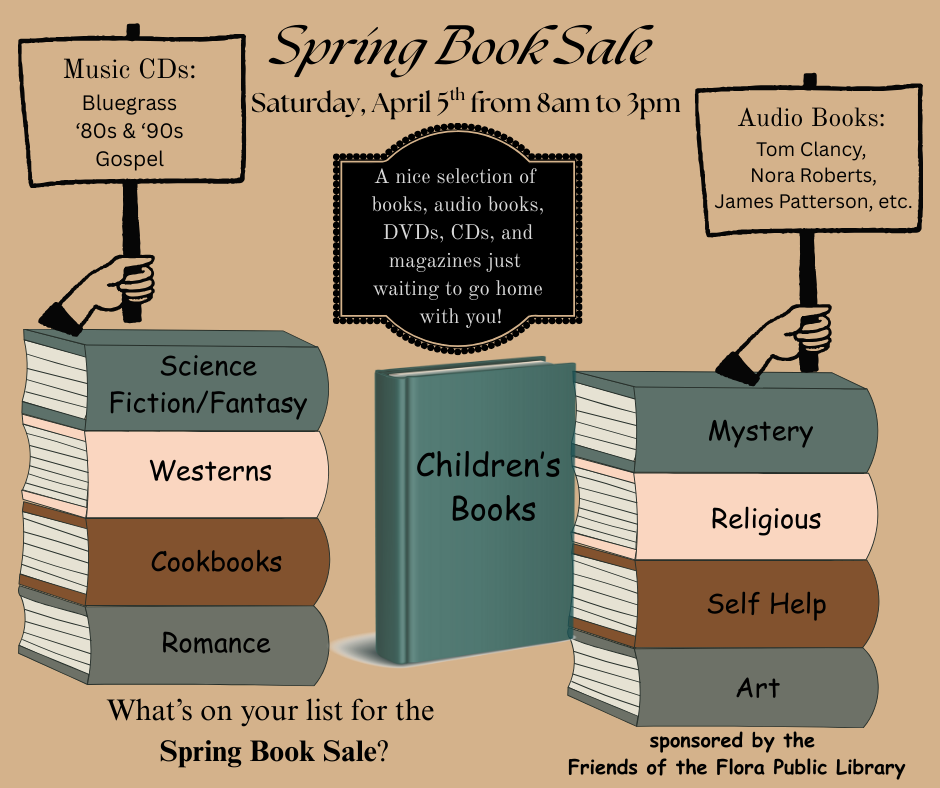 The Spring Book Sale is TOMORROW (4/5/2025)! Lots of items waiting to go home with you! Books are $0.25 each, DVDs & CDs are $0.25 each or “price as marked”, Magazines are $0.10 each or 12/$1.00. We also have puzzles! Bring your bags or boxes and shop to your hearts content.